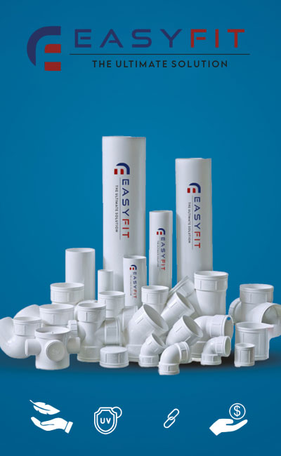 EasyFit is a premium producer of UPVC and PPRC piping solutions with one of the largest dealer networks in Pakistan. Built on a commitment to quality, innovation, and durability, we provide trusted solutions for residential, commercial, and industrial needs.