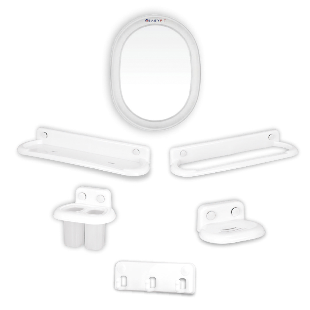 Upgrade your bathroom with the Easyfit Accessories Set — featuring a mirror, towel rack, soap dish, and more. Stylish, durable, and designed for everyday convenience.